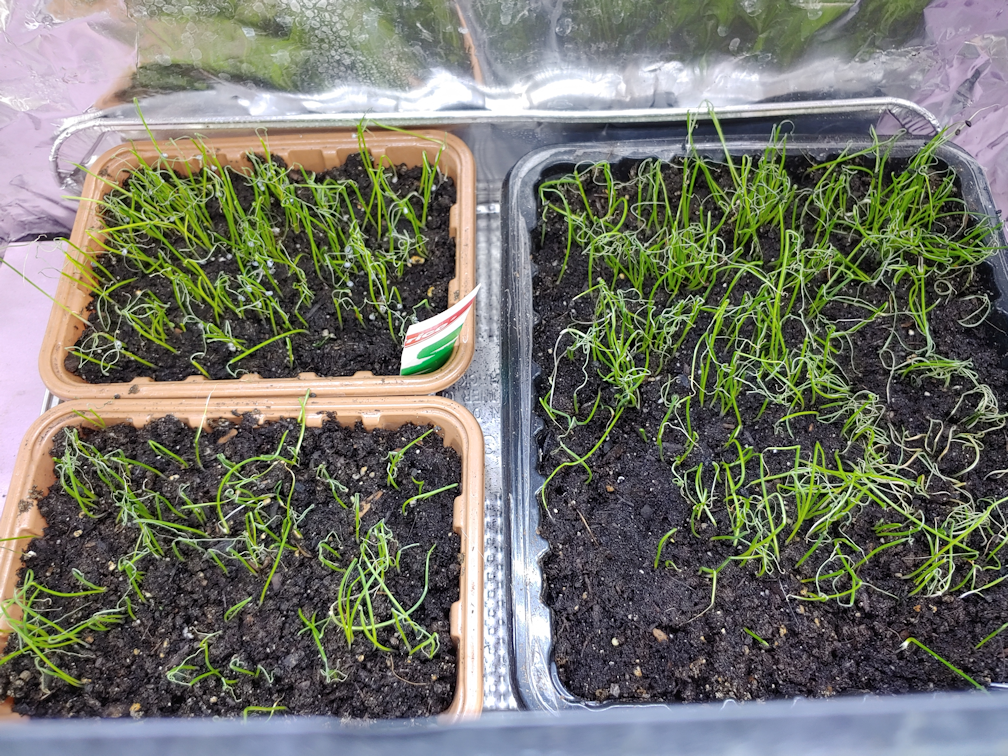 One of things we started indoors were the four seeds we managed to save from the King Tut purple peas we tried to grow last year. All for successfully germinated, and were really needing to be either transplanted, or potted up.