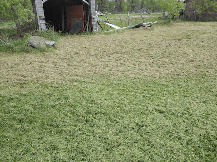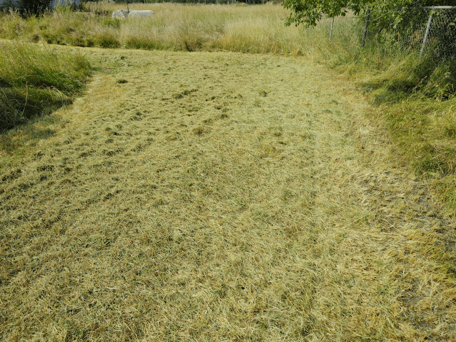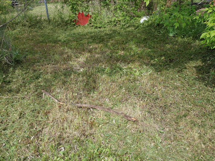 “Finish” being a relative term. Basically, I’ve just been chipping away at the overgrown areas, little by little. Whenever I started working on a area that hadn’t been mowed or scythed before, I’d have to go back and forth with the mower at least three time, to actually get the grass cut properly.