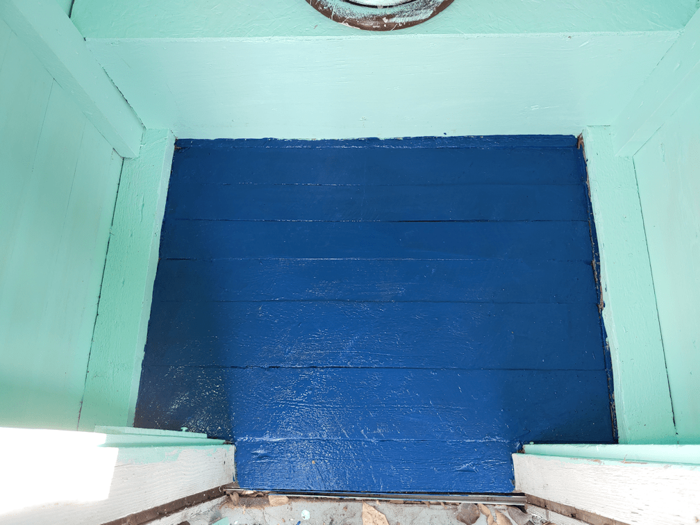 I had one bit of a surprise, though. Before heading outside, I decided to test the septic ejector again. (I noticed we have water seeping into the old basement, and the sump pump reservoir is getting full. Time to set the fans and blowers up again, soon!) I turned the pump on manually and it seemed as if the fluid was swirling actively in the filter, as if it was actually draining. I couldn’t be absolutely sure, though, so I shut it off (making sure to set the valve back to the diverter) and went to check the ejector. I figured if it did start draining, it would be wet on the sheet of metal we have to divert the flow towards the low area.