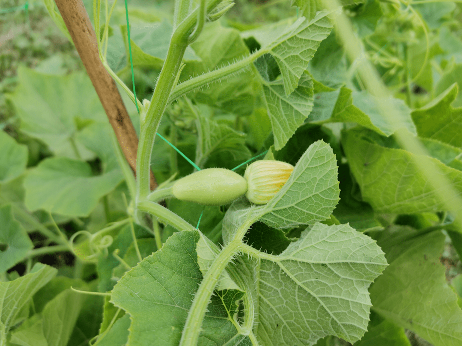 This morning, I found new Ozark Nest Egg flowers, both male and female! I hand pollinated some other ones, but it’s too early to tell if it works. I went ahead and hand pollinated the female flower here, too.