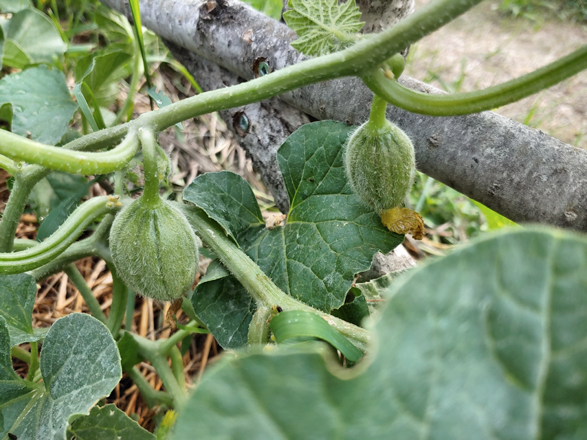 Meanwhile, as I was watering the bed at the chain link fence, I took a good look at the haskap bushes.
