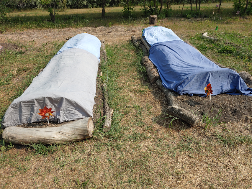 Once the plastic sheet is no longer needed, I will have to put something across the open ends, to keep the cats out. I have some black plastic mesh that should work out well, once I figure out how to secure it!