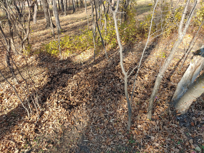 Once the cut pieces of trunk are cleared away, the rest of the tree can be left for the spring. It’s going to take a lot more effort to clear that out, since it is in between other trees and in underbrush in the spruce grove.