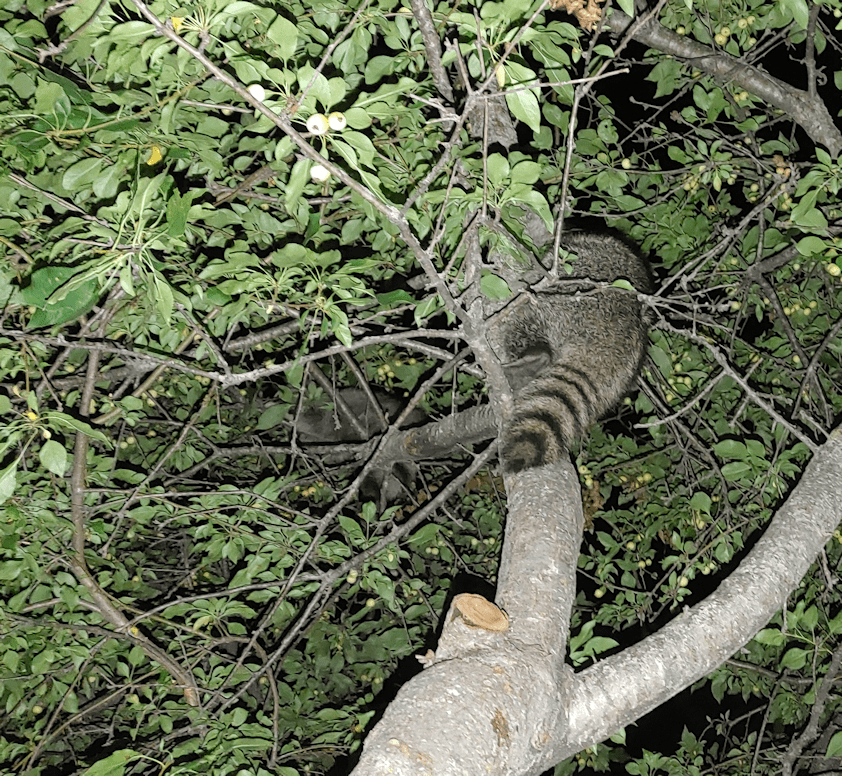 Once I was done my walkabout and settled at my computer, I got the live feed to the critter cam open. Since then, I’ve had to chase both skunks and raccoons out of the sun room, several times!