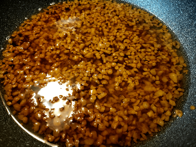 I cooked it down until it looked like this. Deciding when to stop was pretty much based on scent. Once things started to smell like things were starting to char a bit (the tiniest pieces could potentially start burning), I figured it was good enough!