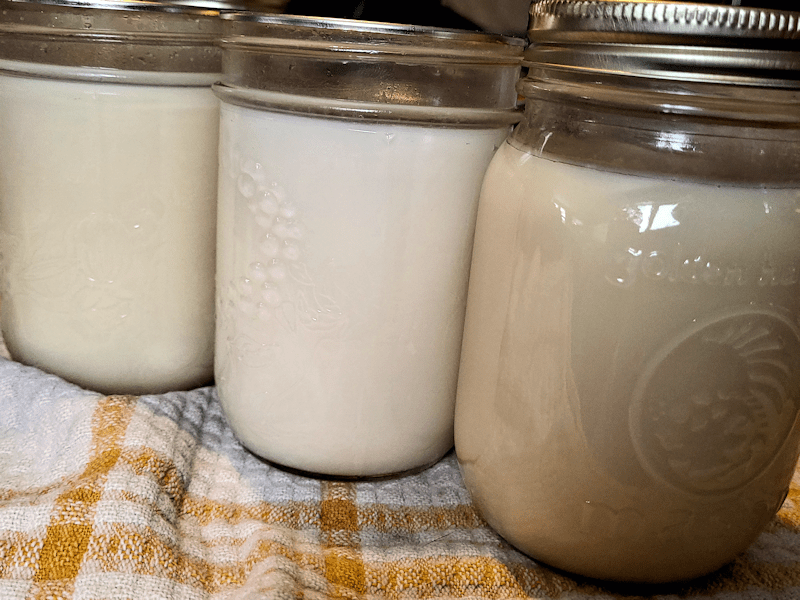 The jar from the cracklings will be used first, and then the one that has the least in it – which you can see in the photo is cooling down quite a bit faster than the others! Lard is a neutral flavoured fat, but that last jar will likely have more of a flavour to it. It should be interesting to try it out and compare.