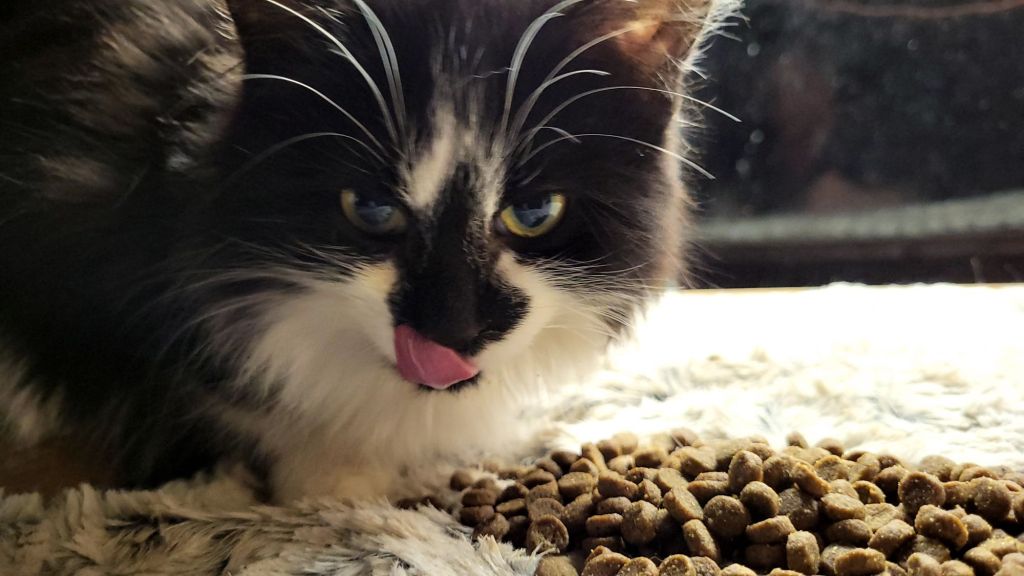 Along with the food donations, she also passed on a couple of cat caves and a bunch of treats, too! She has been able to help us out with the cats so much, we’re more than happy doing what we can to help her back, by taking in Marlee (who I can hear growling at other cats behind me right now, from the safety of her cage). We just did the evening wet cat food feeding in my office, and she was quite happy while she was eating, at least! The grey lady needs some more TLC, I think. 😊