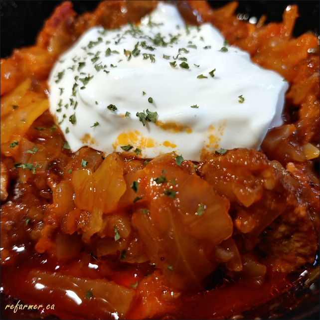 Serve with rye bread, or a dollop of sour cream. Garnish with parsley if desired.