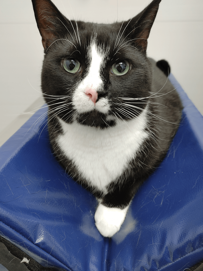He had been perfectly fine until one morning, he threw up and there was blood. They immediately took him to a vet. They X-rayed him and found an intestinal blockage, from a twist. It’s the sort of thing that can happen randomly and has no specific cause. They put him into surgery immediately, and found all his intestines were messed up. It ended up taking a team of 3 vets 4 hours (and $6000, up front!!!!) to save him. Apparently, they were amazed he didn’t die as a kitten, with how is insides looked. !!!