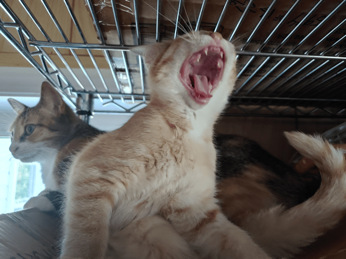 Our new indoor addition is settling in fairly well. He’s so tiny, we’ve had to supervise him rather closely, in case he got stuck somewhere. Plus, the other cats aren’t too keen on the new addition.