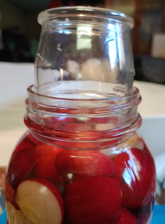 Add weight or small jar to keep apples submerged. Exposed apples may start to mold.