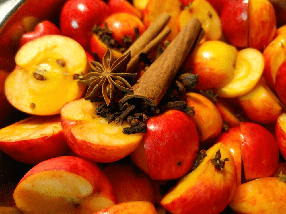 any combination of whole, not ground, spices, including cinnamon sticks, whole cloves, allspice, star anise, etc. to taste.