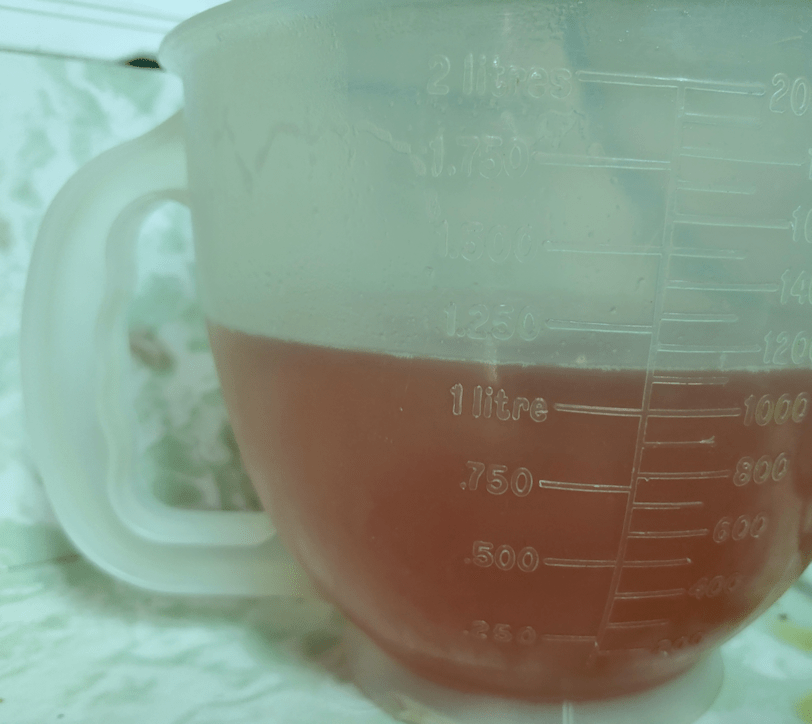 I used the jelly bag for the spiced mixture and hung it up in my usual spot. By then, I already had over a litre of juice strained out!