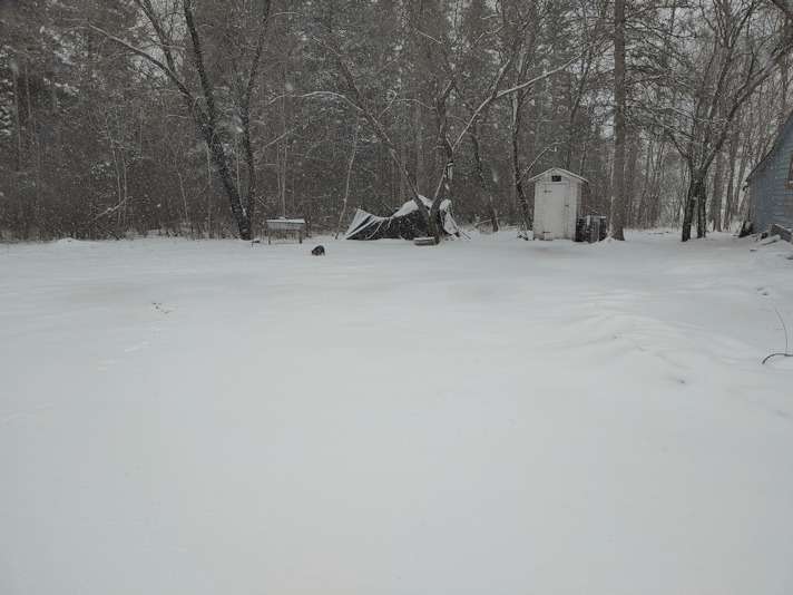 The tuxedo was just loving playing in the snow on the water bowl house roof! Every now and then, he would start sliding down. 😂 I don’t think they’ll be playing up here as much once the scrap piece of metal roof is installed. The metal will be a lot colder in winter, and hotter in summer!