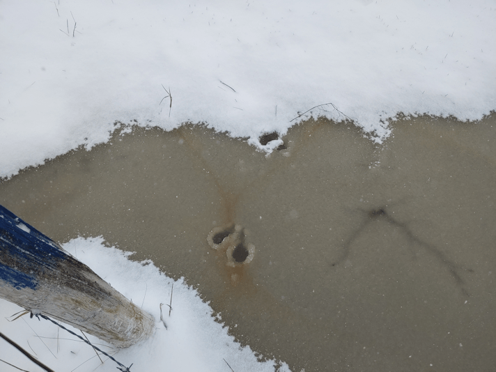 There is, in fact, a large puddle of water over much of the area here. Thankfully, the lower part of my snow boots are waterproof, so as long as I skirted the edges of where I knew the water to be, I would be fine.