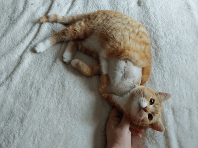I lifted it up and found that it did not seem to be damaged. I found some short support posts that used to be part of a canopy tent frame that a tree fell on a few winters ago. I set one beside each melon. A cat could still lie on the mulch beside in between, but not on a melon plant – at least not without being right up against a stick!