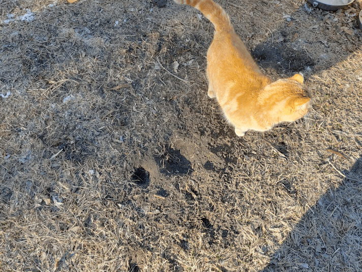 The mulch around it was flattened, too, in an almost perfect circle. It looked like a cat took a nap on it!