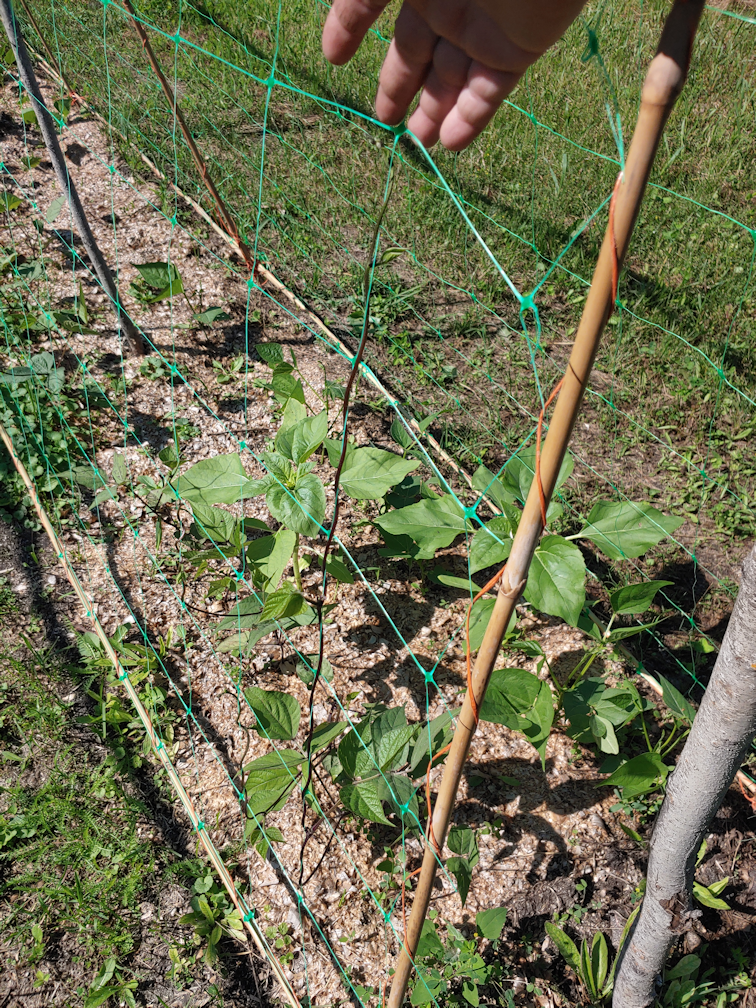 I was sure the beans I planted at the tunnel were also vining types, but I’m starting to think they are actually a bush bean. They are getting bigger, but so far, I see nothing to show that they are climbers!