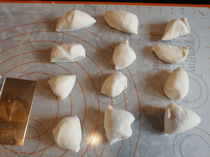 After the dough is kneaded until smooth, the recipe said to divide it into 10 pieces. There are 4 of us in this household, so I divided it into 12 pieces, instead.