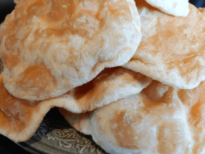 The recipe calls for olive oil to be used to fry the bread. Olive oil has a low smoke point, so I modified the recipe a bit more. I added a bit of vegetable oil to increase the smoke point a bit. I was just frying in a pot on the stove, so this was more of a safety issue.