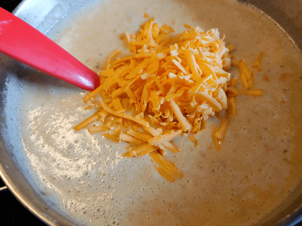 Add in a good handful or two of shredded cheese and stir until thoroughly melted and incorporated.