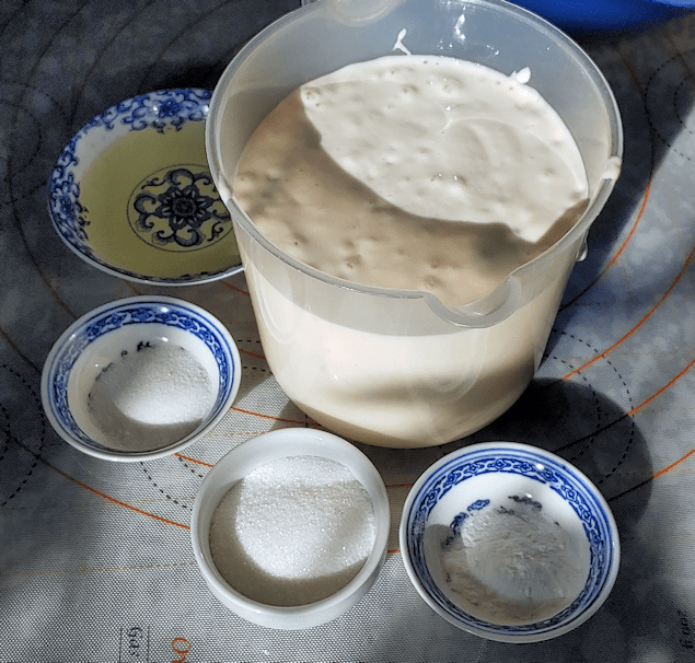 Armed with more information from my mother, I started on reconstituting our bread dough “egg” in preparation for baking with it, tomorrow.