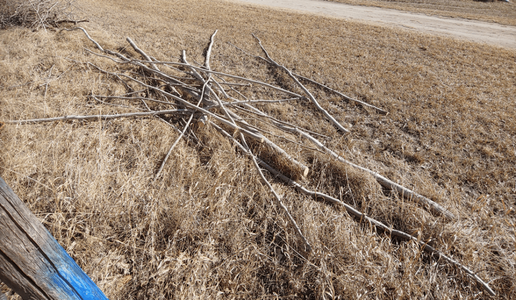 In the distance of the after picture, you can see several poplars lying on the ground. I was trimming branches off of them when the battery died. I’ve left them there until I can come back to finish the trimming.