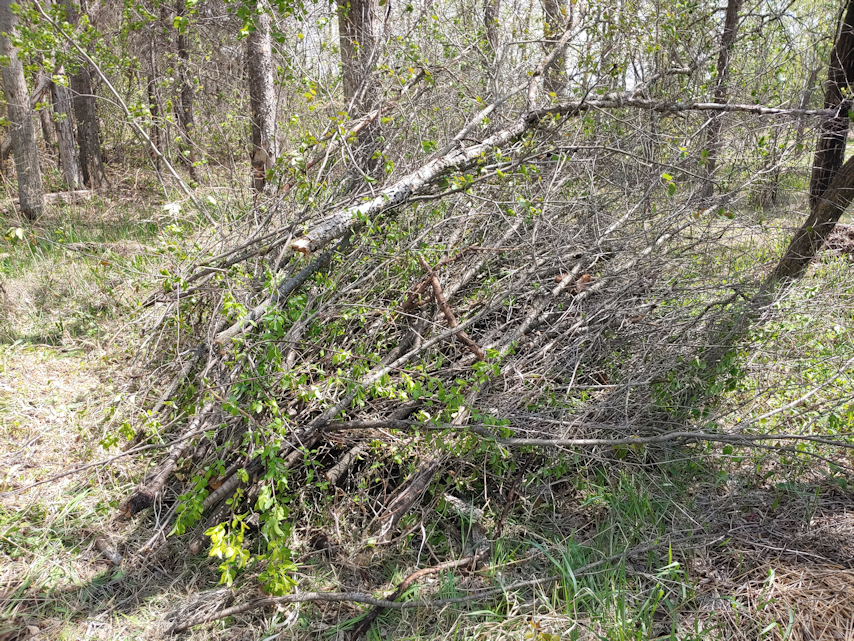 The big branch on the top of the pile is the piece of tree I pulled out of the apple tree.