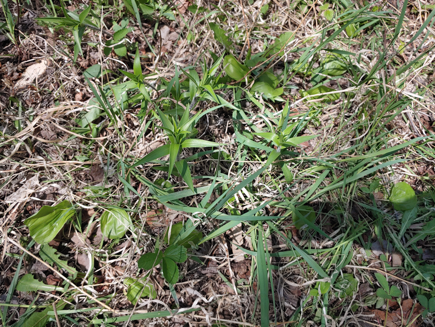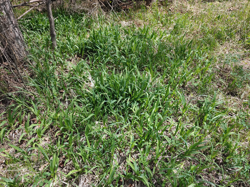 When we had a trail cam on a tree instead of a post, I used to trudge down that foot path, every morning, to switch out the memory card. This area has already seen a fair bit of clean up since we first moved here. The space to the left of the foot path has self-seeding flowers. I figure it would be good to get this done before they start growing again. Once they’re in full bloom, it’s a gorgeous mix of purple and green, almost all the way down.