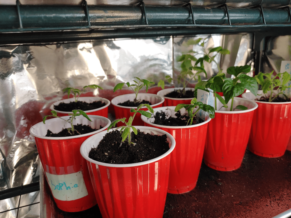 Well, the last of the stuff that needed to come in before tonight is done – at least as much as possible. The girls and I put bottles with warm water under the eggplants in the grow bag (the only ones fruiting) and, since they were right there, with the sweet potatoes, too. The eggplant and one grow bag with sweet potato got covered, but the sheet wasn’t big enough to cover the other two grow bags. The apple gourd also got bottles of warm water placed beside them, but we could only cover two of the three plants, so we covered the two biggest ones. As I write this, we are down to 9C/48F, and it’s supposed to keep dropping until we reach 1C/34F at about 7am. Between 6 – 8 am tends to consistently be the coldest time of day.