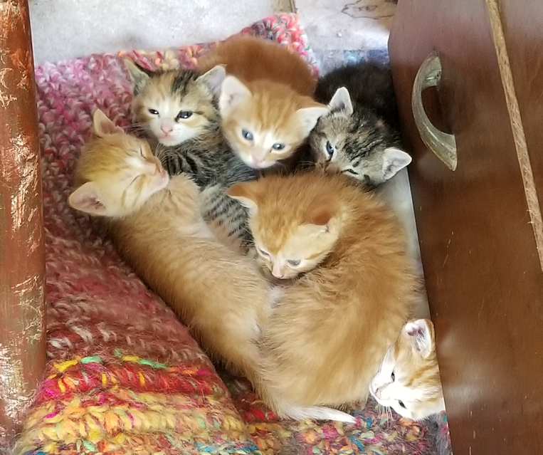 Of course, as soon as I sat down at the work table, I had kittens all over me. They did eventually move on, except Big Rig.