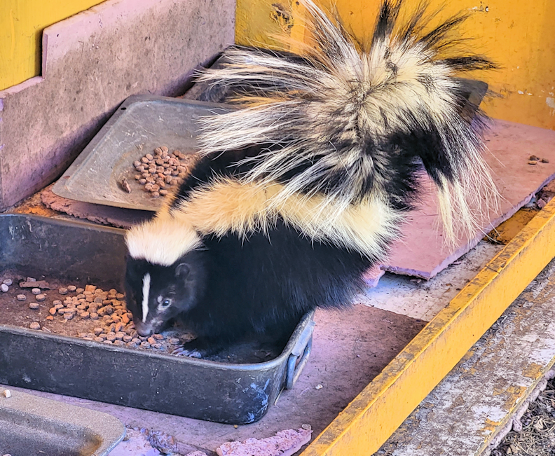 This little bugger did not want to leave, either. It’s still too cold to set up the hoses, so I tried to convince it to leave with a long stick. The little bugger just sniffed the end of the stick and kept on eating. He (she?) finally left after I went around the kibble house, banging on the roof and kicking at the back wall.