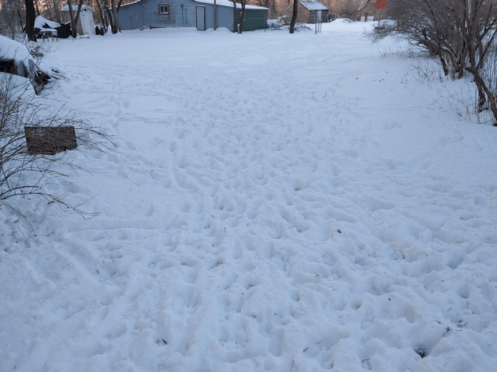 After I came inside, the girls went out and cleared paths to the compost pile, outhouse and the back door of the garage.