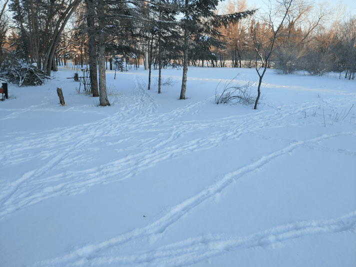 Today was pretty warm, so I took advantage of it to do a small burn. While tending the burn barrel, looking at the nearby deer tracks in the snow, I found myself trying to figure out another set of tracks.