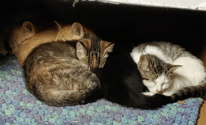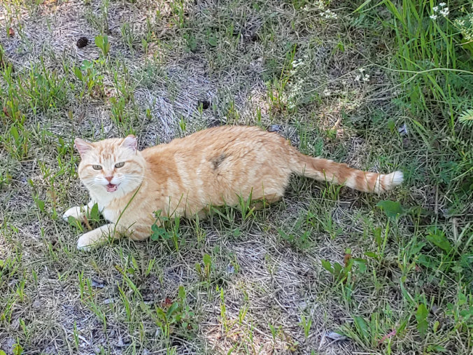 So I went around to the new part basement and joined the kitties for a while. Though I’d washed up after coming inside, my clothes probably still smelled of bug spray, so they actually left me alone a fair bit.