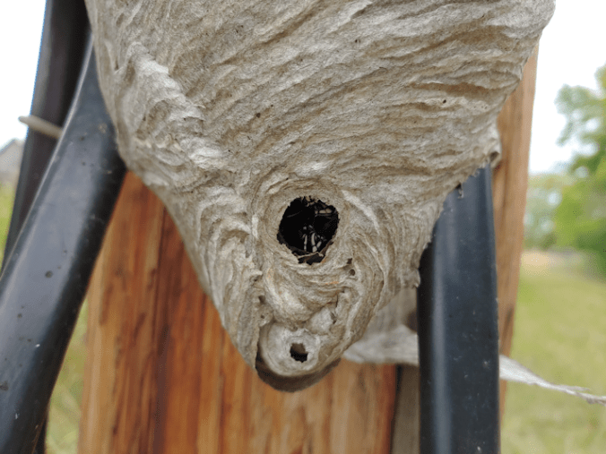 This morning, I headed over to do a meter reading on our power pole. I’ve stayed away, since it’s got a wasp nest under it, so I haven’t actually looked at the nest for a month.