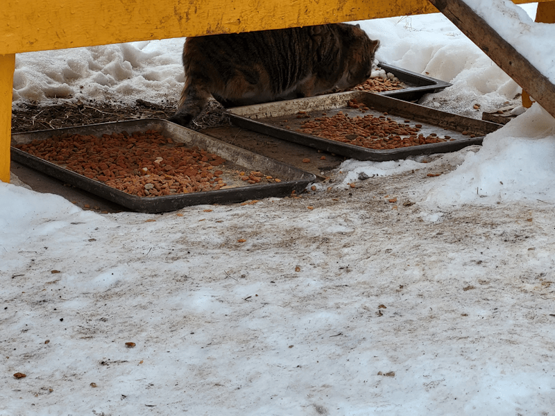 We spoke for a while, while one of his cats kept jumping in and out of the cat carrier, which was open from the top. Aside from their own cats, they get others that show up from the neighbours. Potato was a new one to them, though. While relatively close for driving, it’s quite far for a cat to wander beyond their own territory.