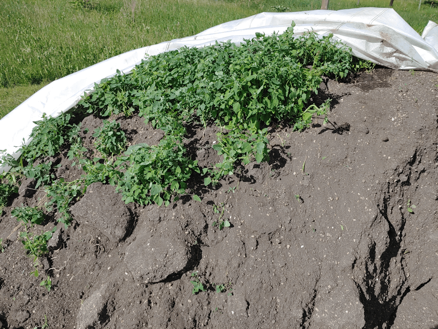 Revealing a whole lot of lambs quarters and other weeds, thriving under the white tarp!