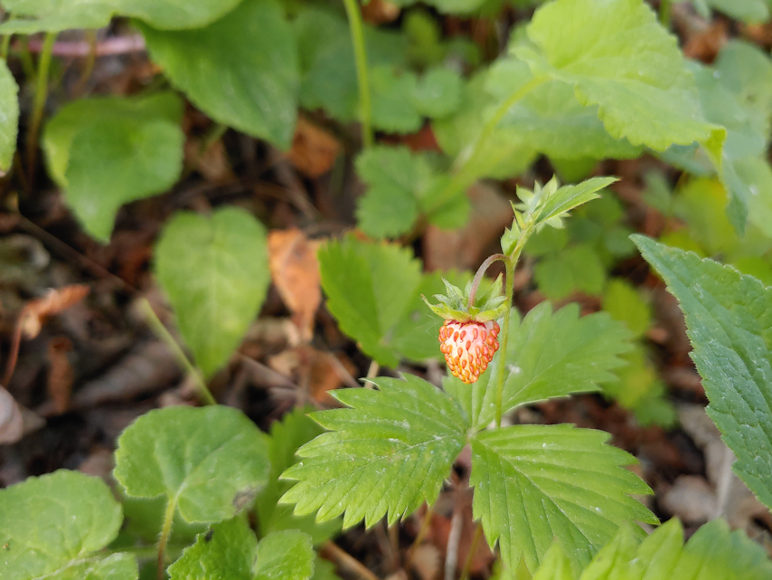 One of the areas I check in the mornings is our little patch of while strawberries in the maple grove. It’s overrun with other plants, but the strawberry plants are so delicate, weeding is a very careful affair.
