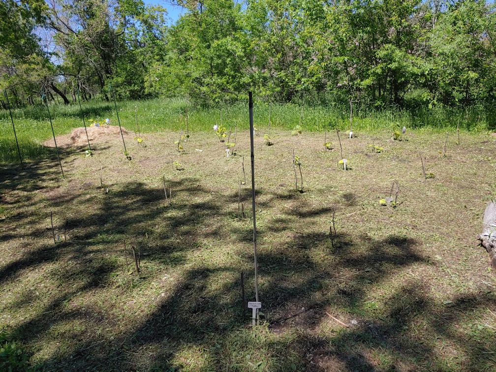 After chatting with my SIL, who was mowing the outer yard at the time for a while, I went to check on the walnuts that were planted. Things were getting pretty dry, so I filled the wagon with watering cans and buckets of water and gave them a thorough watering. I watered the Korean Pine, too. We really need to remember to water the outer yard transplants more often. Especially with our upcoming heat and lack of rain. We’re not expecting rain until the first week or two of June.