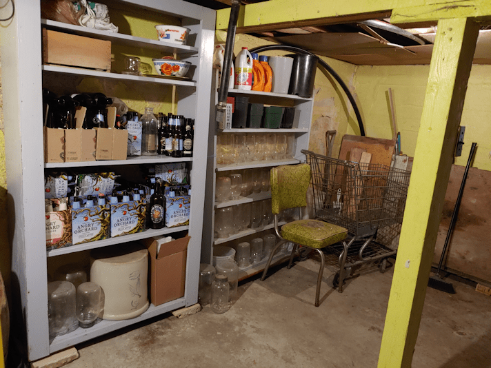 Then, once everything is back up, the chain for the door, to keep it from blowing open too far, will be attached to the top of the frame. Once that is secure, I plan to move the shelf we’ve got behind the door, to the other side. I want to wait until the door is completely done because, right now, that shelf ensures the door doesn’t get blown open and breaking a window or something. I doubt the door can even open that far, but I didn’t want to take any chances!