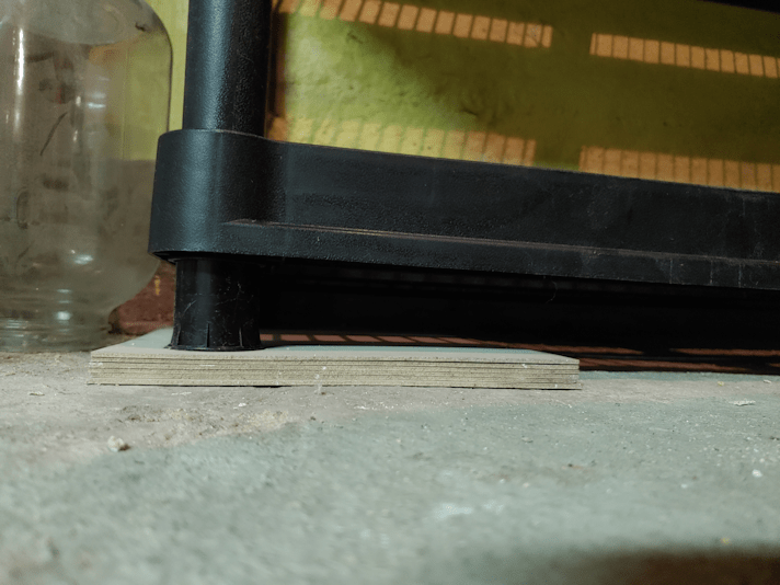 When cutting the side piece yesterday, I first cut it to the line I’d measured and marked with a chalk line, only to discover that when we put the piece in place, needed more cut off. That I was left with two long, narrow pieces came in very handy.