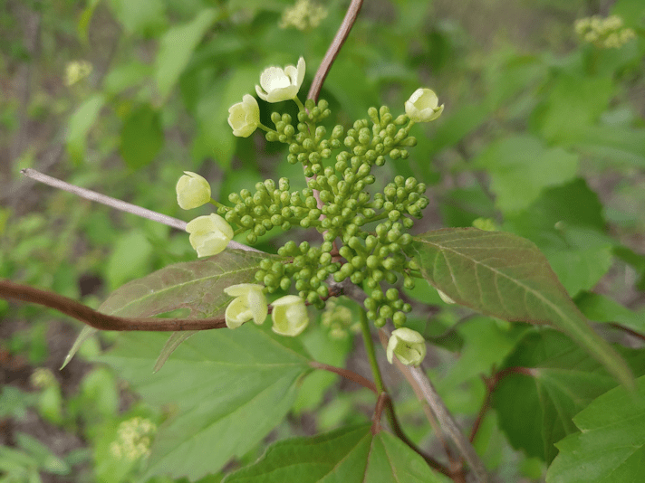 I was very happy to find this. Last year, I spotted two little bunches of red berries on this bush. Using the magic of the internet, it turns out to be a cranberry bush.