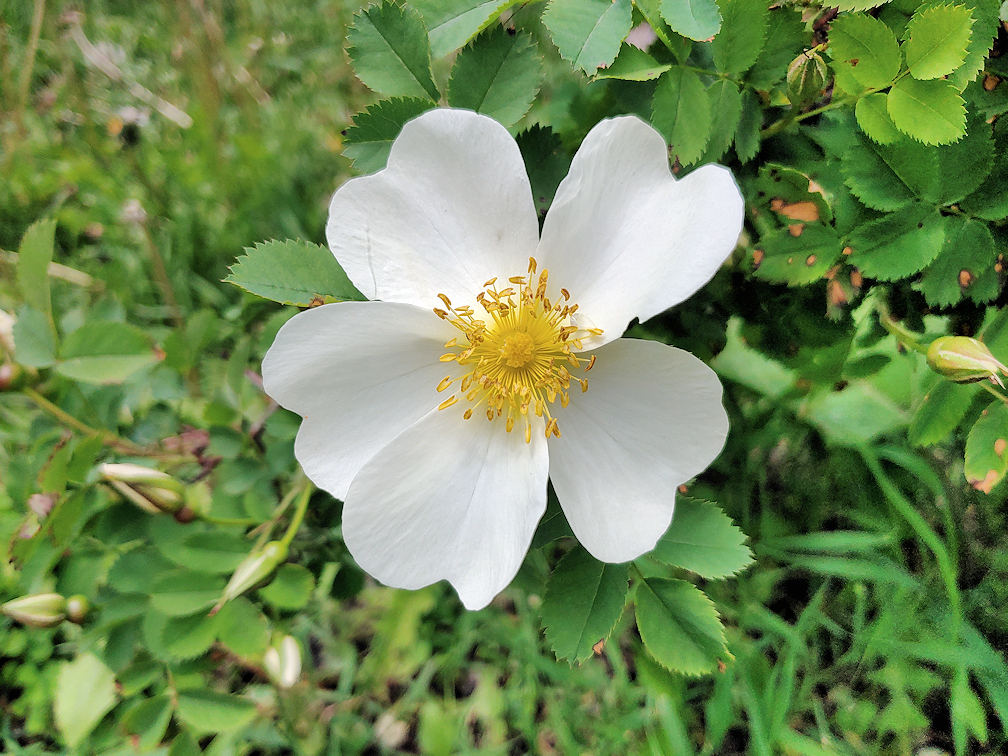 The white roses my mother planted in the same area are doing much better than last year. These are the same type as by the house, but it’s not as good a location for them, so they tend not to be the explosion of flowers, like I can see outside my bedroom window right now.
