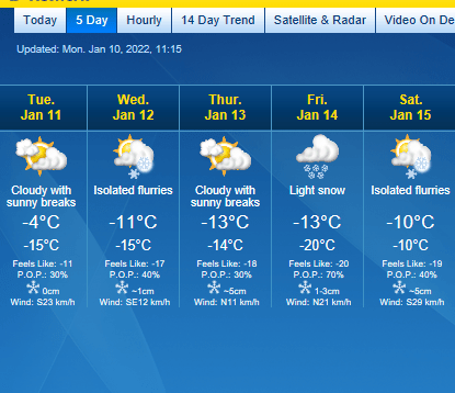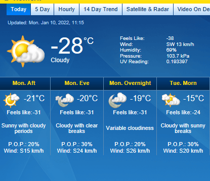 We are at a relatively balmy -7C/19F. According to my app, the wind chill is -13C/9F.
