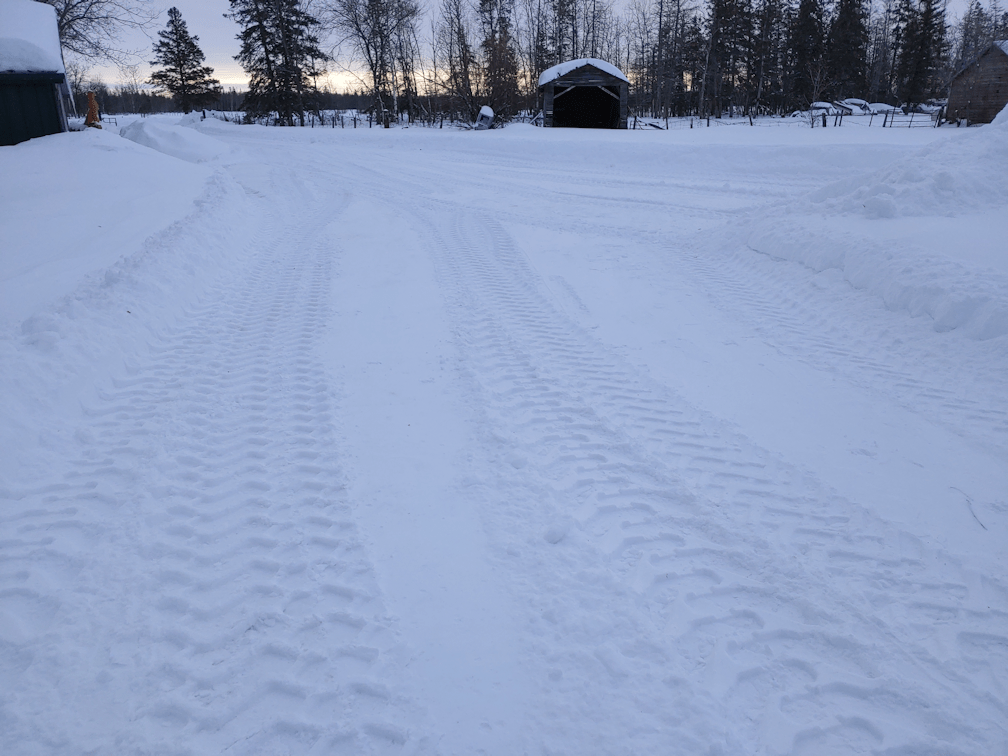 I did get out today, and I am so very happy about it! I was able to get the truck into the yard, so we could load it up and make a dump run. There was just one drifted area I wasn’t sure about, but the snow is hard packed enough that the truck just climbed right over! We could never have done that with the van. It would have broken something! The truck made it through, easily.