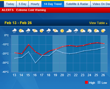 Our earlier long range forecasts that said we were going to have highs above freezing through the rest of March and into April have been completely reversed. Now they say we’re going to have highs below freezing for at least another 10 days. Which wouldn’t be so bad if it weren’t for that bloody wind!!!