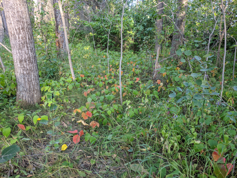Among the trees I hope we will be able to plant are Korean pine. This is a tree that needs to have a “shade shelter” for the first couple of years, and this location naturally provides that for most of the day. However, as you can see, this is also where water pools in the spring. That shade also means the snow takes a lot longer to melt away, and the ground stays frozen longer.