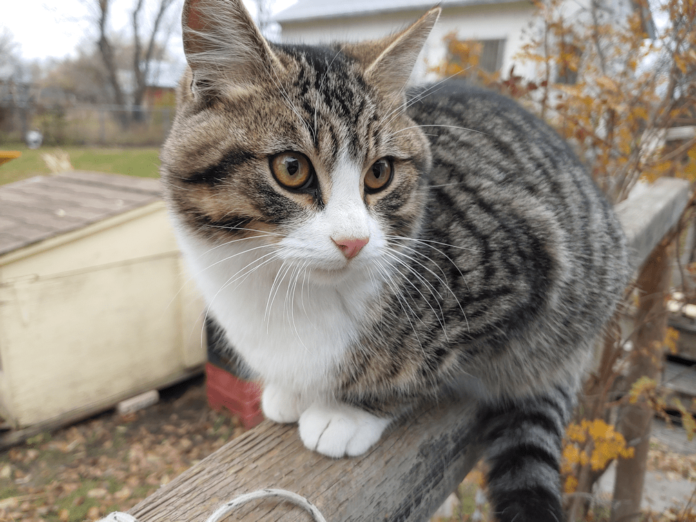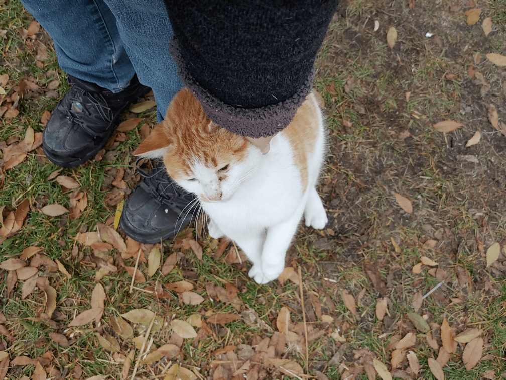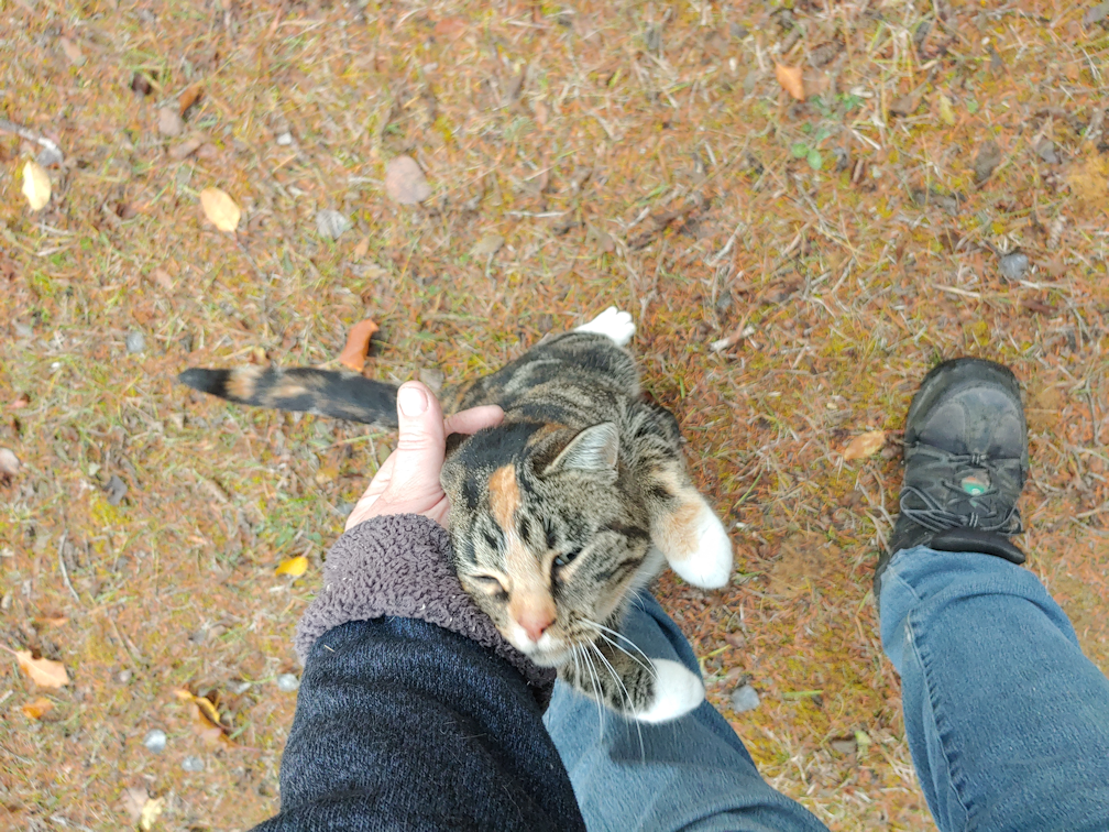 I counted 19, but it’s possible I missed one of the ‘icouses. They were milling about so much! I did get to pet a few furry butts, including several of the kittens that normally would have run off already, plus our newcomer.