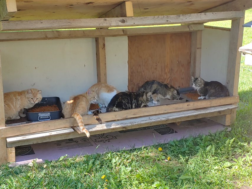 I expect the mamas will start bringing their babies over for food some time soon. I wish I knew where they were. I’d leave food out nearby for them, if I could. I’ve spotted mamas going by carrying various rodents, though, so the mamas are obviously taking care of that, themselves. It just makes less work for them if we can supplement with kibble! That, and there’s a better chance of the kittens getting used to humans.
